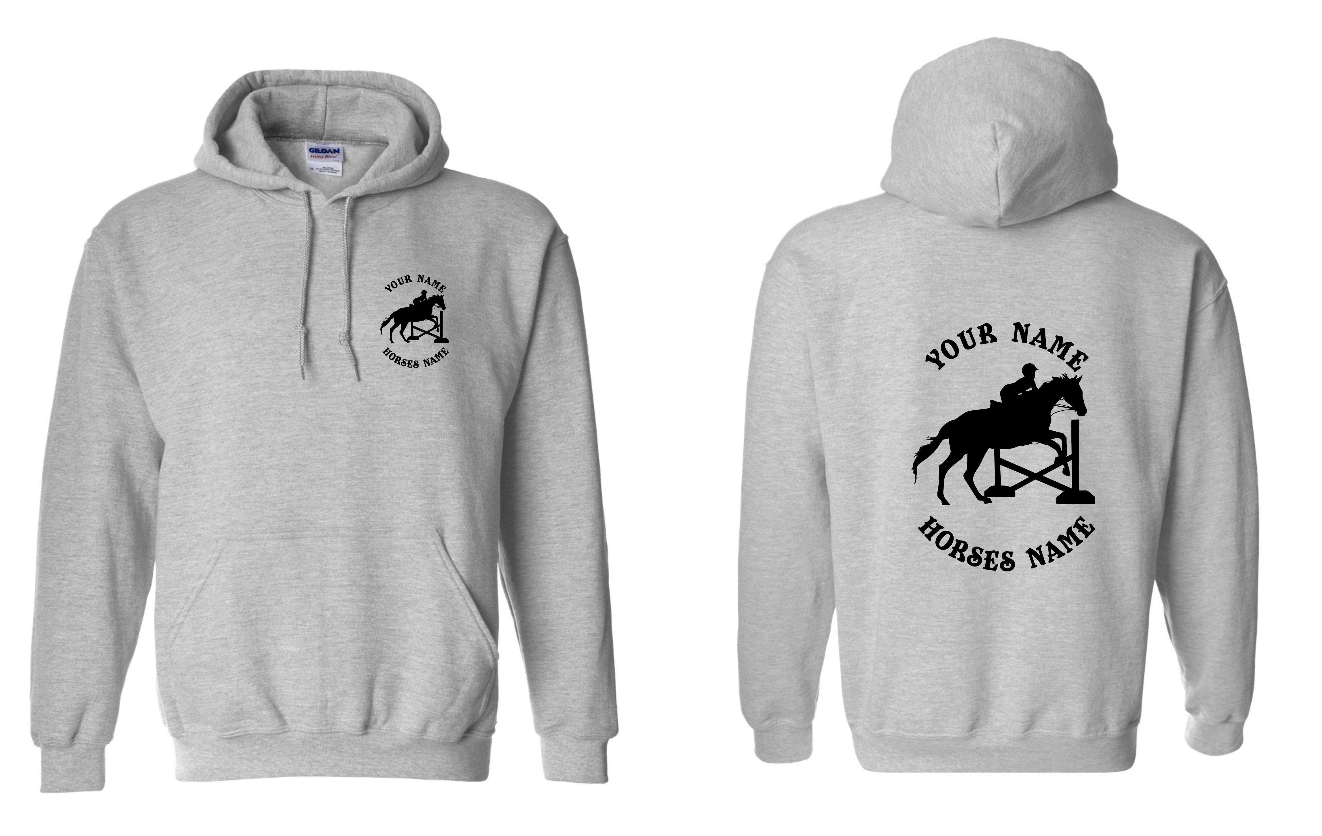 Horseriding Personalised Stallion Rearing Hoodie Horse Hoody Horse with names Equestrian Unisex Hooded Sweat